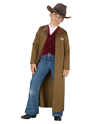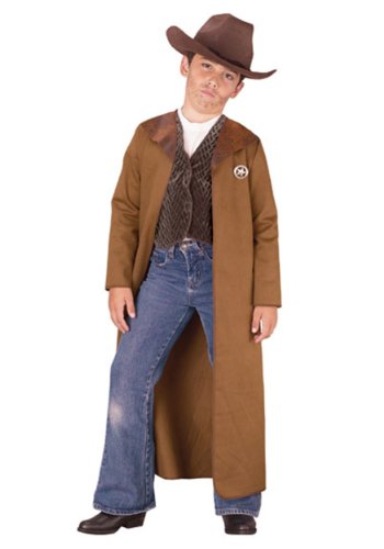 -. Binding : Toy -. Brand : Fun World -. ClothingSize : One Size -. Color : multi-colored -. Department : boys -. Feature : Size: Medium (7-10), Large (12-14) / Includes: Duster coat, vest, sheriff star and a cowboy hat / Jeans, boots and shirt not included. -. Label : Fun World -. Manufacturer : Fun World -. MPN : PE350298 -. PackageQuantity : 1 -. PartNumber : PE350298 -. ProductGroup : Toy -. ProductTypeName : TOYS_AND_GAMES -. Publisher : Fun World -. Size : One Size -. SKU : AF9100 -. Studio : Fun World -. Title : Old West Sheriff Kids Costume