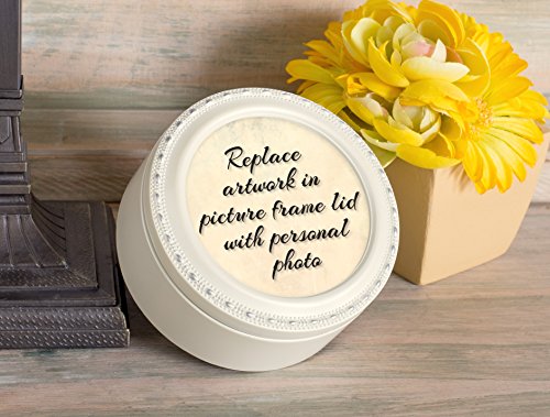 This is a beautiful round music box with a Woodgrain finish. There is enough room inside to hold a few bracelets, earrings, rings or necklaces. The picture can be replaced with a personal photo. It plays a high quality Sankyo music movement. It comes in the original box for easy wrapping.Feature