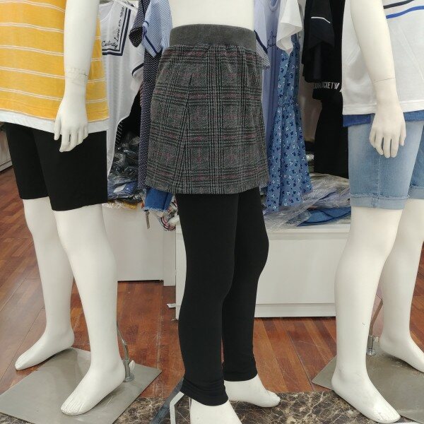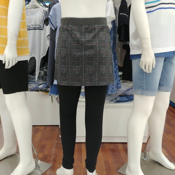치마 레깅스입니다.그레이 바탕에 체크 무늬가 클래식 합니다.같은 디자인 체크의 뷔스티에 티셔츠와 셋트로 입으셔도 좋습니다.