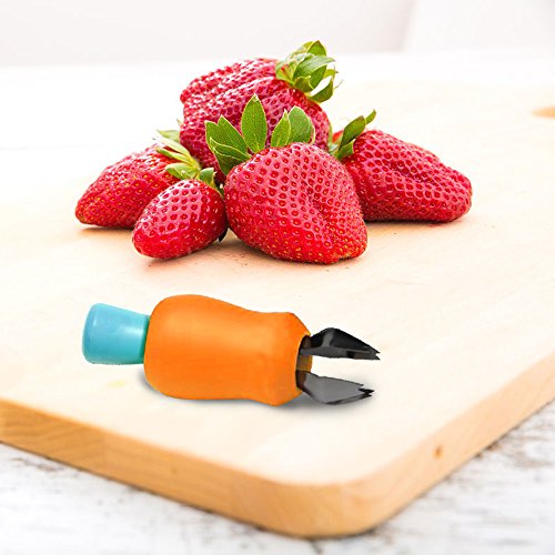 - Perfect for Parties –A party with healthy, colorful, fresh fruit salad will make your friends more excited. Mutifunctional Huller. Creative fruit berry stem remover is a awesome alternative for coring and hulling. Just press the button, insert the claw and push gently and stem of strawberries will be twisted out. The Huller is easy to use, simply use for all kinds of people. Comfortable and non-slip grip strawberry huller is easy to release the hull and leaves.