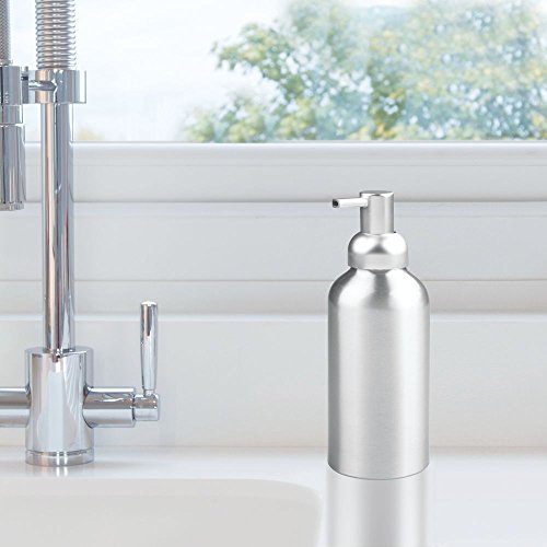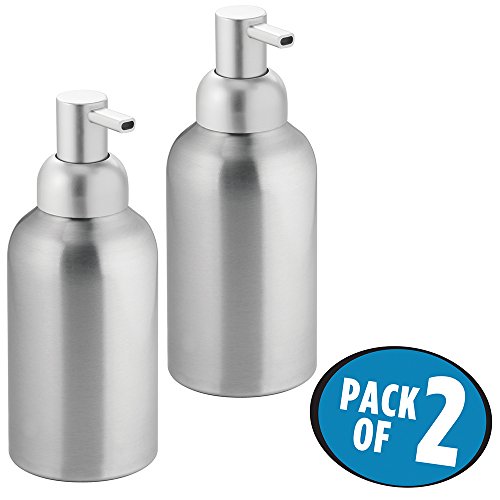 mDesign Rustproof Aluminum Soap Dispenser Pump, for Kitchen or Bathroom - Pack of 2, Medium, Brushed/Silver