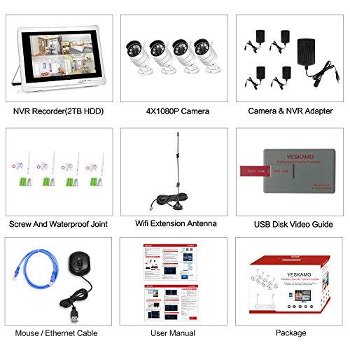 TIPS: Wireless Do not Mean you can use system without any cables, NVR Recorder built-in Monitor and Cameras need plug power supply. Display is not a touch screen Yeskam 2 in 1 NVR Recorder with 1080P Monitor is your reliable security guard which can be used at residence or business.