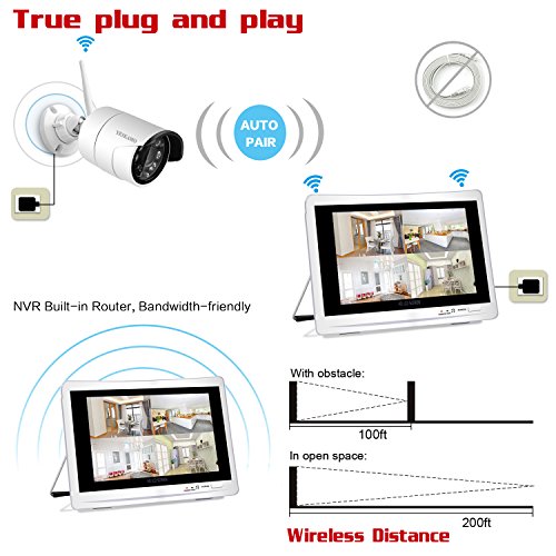 Noted: All cameras and 2 IN 1 NVR Recorder with Screen need power supply cable,Ture Plug & Play with Auto-Pair Technology Just Plug the Power start to stream the video feed and the system works recording even without any Internet connection.