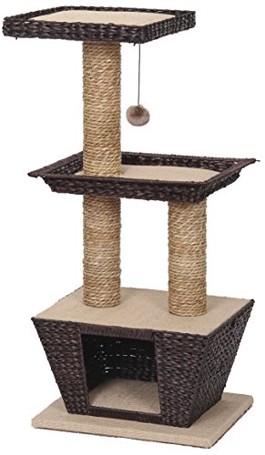 -. Feature : Katzenkratzbaum / naturelles Material / perfekt in jedem Haushalt / 45x35x98,5cm / mit Bett & Kissen