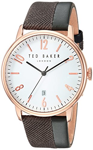 Laid-back does not have to mean boring or drab and this Ted Baker Daniel watch is proof for those who doubt it It is the perfect in-between a duo of dapper and down-to-earth It features a 42mm stainless steel case that makes for a dapper appearance right off the bat and creates a subtle contrast against the white dial that is perfectly pleasing to the eye The hands on the dial are black which contributes to the masculine elegance of the piece The sleek arabic numerals contribute to its classy feel as well However the combination of its band and minimalistic design is what makes this timepiece a mix of sharp and nonchalant Although the details are undoubtedly classy in the refined shade of black it is not too much class The band also plays a major role in keeping this timepiece grounded with its brown leather composition It has a water resistance of up to 50 meters 165 feet 5 atm and its dial is protected by a mineral crystal You do not have to worry about destroying this bad boy anytime soon The best part It uses a quartz movement so you are guaranteed some serious accuracy and precision from this time-keeper So whether you are watching a movie at home in the office working out at an upscale event or even going out with the boys you can be rest assured that this watch will last you as long as you need it to It is durable charmingly simple and polished all in oneFeature