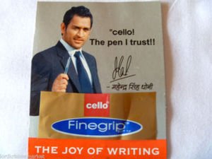 -. Feature : Writing Color : - BLUE / BRAND AD By Indian Cricketer Mahindera Singh Dhoni / Cello ''FINEGRIP'' Fine Write ball pens Set, lot Of 10 Pens Made in INDIA R&D in GERMANY BRAND AD By Indian Cricketer Mahindera Singh Dhoni SELECTED 'Superbrand' INDIA 2009-10 CONSUMER VALIDATED 100% Quality Tested LOW PRESSURE HIGH VOLUME ELASTO GRIP Cello FINEGRIP NON-STOP Writing ball Pens BLUE Ink (10 Pack) Smooth ink flow Durable point