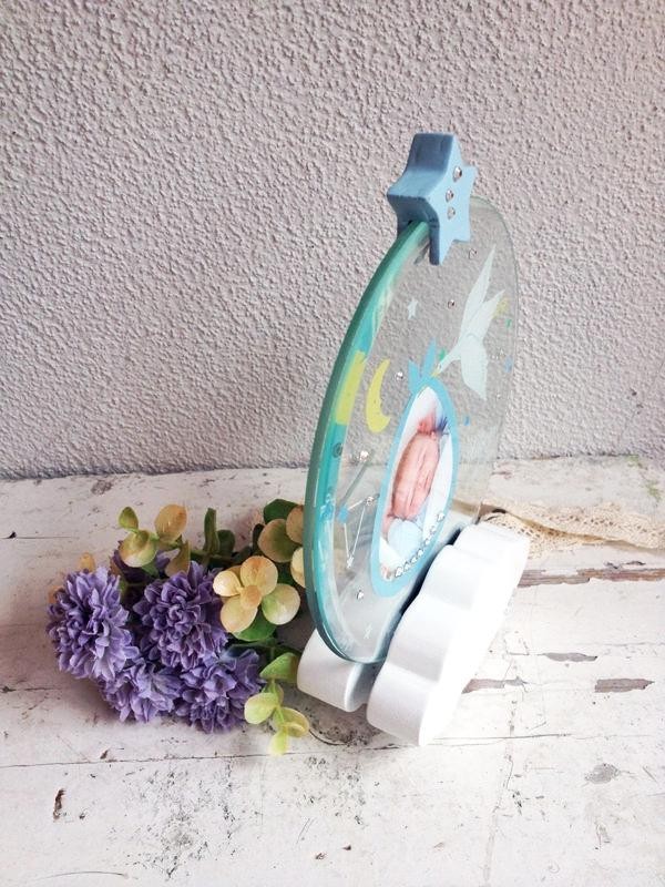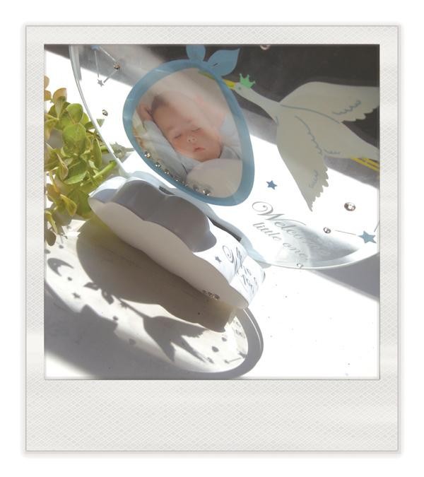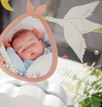 | 赤ちゃんを運ぶコウノトリがふんわり雲の上を渡っていく、とってもキュートなフォトフレーム。厚手の面取りガラスを使用しているので高級感があり、上品な雰囲気で写真を飾る事が出来ます。 |