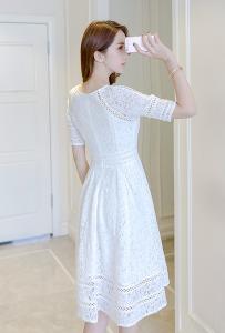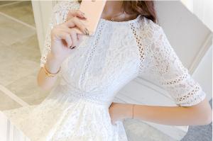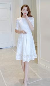 レースワンピース レースコットンワンピース 半袖 フラワー刺繍 ガーリー シンプル 定番 春夏 モテワンピース プチプラ