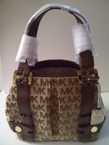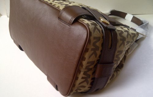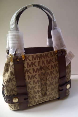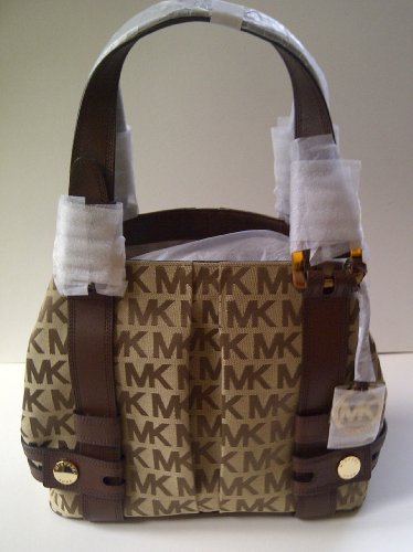 Michael Kors Signature Beige / Ebony / Mocha Monogram Jacquard Harness Grab Bag