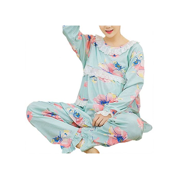 원본상품명:(マ?シェル) Marshel 高品質 やわらか素材 かわいい 授乳口付パジャマ 兼 リラックス ル?ムウェア 服を着たまま簡?授乳 ボタニカル柄 ブル? 全3サイズ