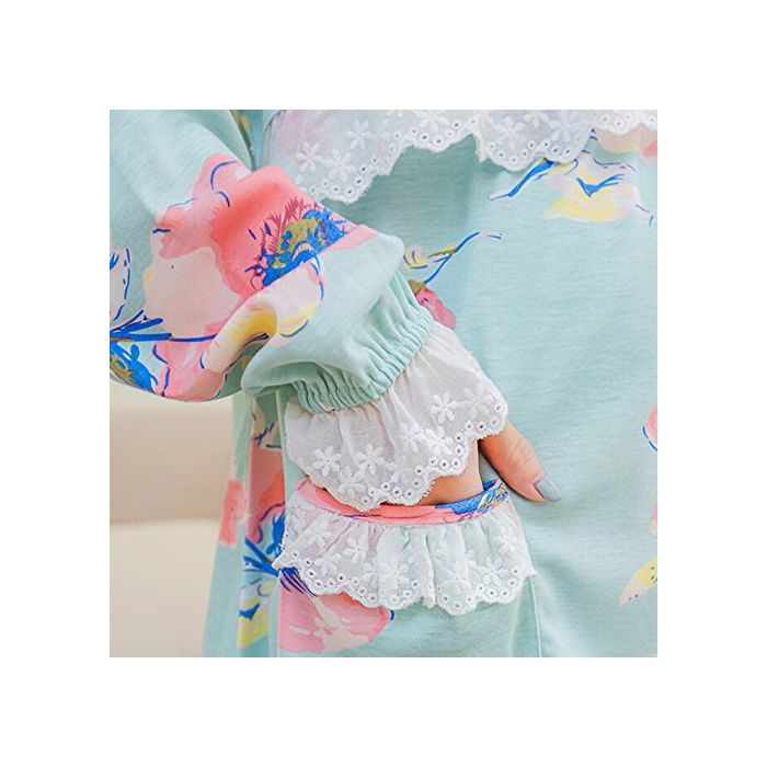 (《마시루》) Marshel 고품질 부드러운 소재 귀여운 수유구 부파자마 겸 릴랙스 룸 웨어 옷을 입은 채로 간단 수유 보태니컬무늬 블루 전3사이즈