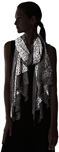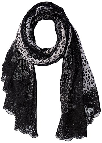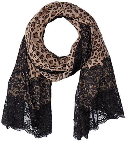 Animal printed leopard scarf with black lace trim