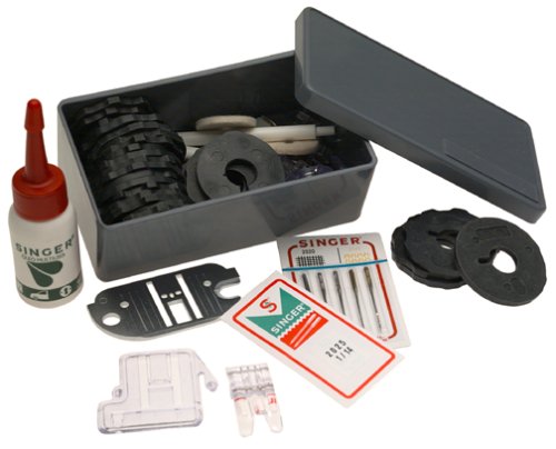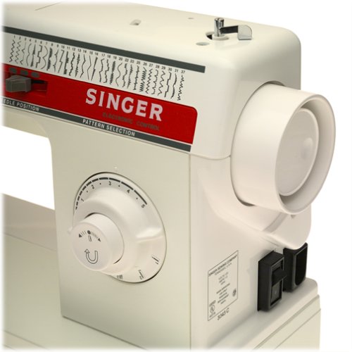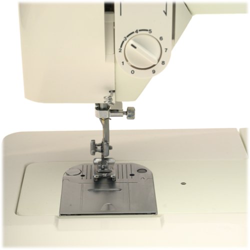 -. Feature : 43 stitch functions, 30 built-in stitch patterns / Includes seven presser feet, seven needles, three bobbins, oil bottle / Free arm; top drop-in bobbin; accessory box / Easy threading system; stitches illustrated on machine / 25-year warranty
