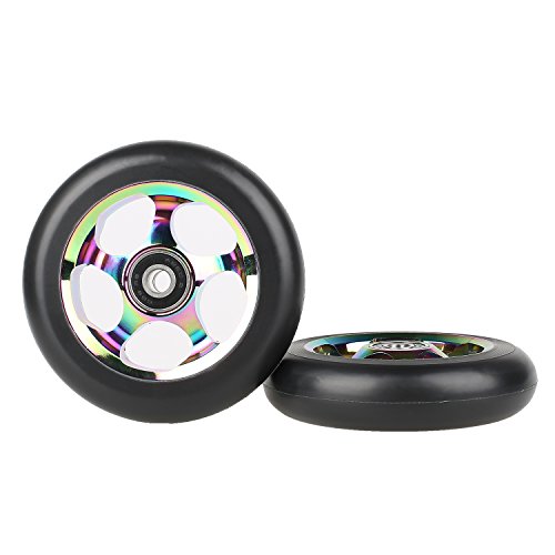 Studio : Kutrick Publisher : Kutrick Binding : Misc. Product Description Good to Know for Kutrick 100mm Scooter Wheel: Package: 2pcs Size: 100mm Brand: Kutrick Codition: Complete Wheels(Needn't assemble bearing Spacer) Core: Aluminum Core Design: Spoked (Nice Design) Bearing: ABEC-9 (Ensures a grippy, fast and buttery roll) hardness: 88a Urethane Pu Price is for 2 wheels Complete wheels Includes bearings spacers. The Wheel fit for Scooter Model: Fuzion X-3,Vokul Vk3, Pulse Performance KR2,Royal Guard II and all scooters with 100mm wheels. How to Buying Good scooter wheels Every wheel needs 2x bearings and 1x spacer to function and Wheels are made in different materials, dimensions, hardness, profiles and different cores. The Cores have 1.Solid core(Massive core for maximum durability);2.Spoked core(Core with holes and cutouts Makes a lightweight wheel, but also weaker);3.Hollow core(Hollow inside for lightweight, while still maintaining strength. (Not as strong as solid core)and Plastic cores do not last long, and are a bit flexible. Profiles have Flat (A flat profile that gives strength to the rubber and maximum grip);2.Narrow profile ( A narrow profile gives you speed) Hardness have 1.The durometer scale goes from 0-100a, where 100a is the hardest. Most scooter wheels are 85a. 2.Hard wheels last longer, they are more slippery but are also faster;3.Soft wheels wear down faster, but have a good grip, great for parks and indoor use. 0
