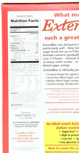 -. Feature : Pack of 15 Nutrition Bars, each Bar weighs 40g (1.41oz). Total Net Weight 600g (21.16oz.). / High protein (12g) and fiber (5g). Gluten Free. Sugar Free. Kosher. Only 150 calories and 1g Net Carb. / The only formula proven to help control blood sugar for 6 to 9 hours. / Helps control hunger and reduce calories consumed at next meal by 21%. Helps reduce episodes of hypoglycemia by up to 75%. Helps reduce AM hyperglycemia by 28%. Helps improve muscle recovery and sustain energy for exercise. / MD Invented. Endorsed by Professional athletes. Recommended by Doctors, Dietitians, and Nurses. Clinically Proven. Patented worldwide. / Pack of fifteen, 1.41-ounce, total 21.15-ounce / High protein (15g) and fiber (5g) nutritional snack bar that is clinically proven to control blood sugar for up to 9 hours / Diabetic friendly snack bar that helps avoids blood sugar highs and lows / Low carb, low glycemic and low fat nutrition snack bar clinically proven to control hunger / Gluten free and heart healthy snack bar that travels well