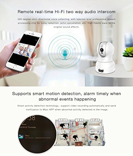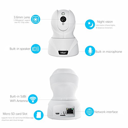 -. Feature : BEST FOR Home Security, Business Security, Baby / Pet Monitoring, Elderly Parents. Manage your camera from your smartphone tablet pc, everywhere in the world, via 3G/4G/Wi-Fi network. / LIVE STREAMING DAY AND NIGHT - 1/3'' CMOS image sensor + ultra-hd lens, enhanced 8x digital zoom, it gives you incredible smooth and super clear images and videos in day and night. / COMMUNICATION - Communicate in Real Time through your Camera with built-in hifi speakers and Microphone. / RECORDING & MOTION DETECTION - Take snapshots and record videos on your phone and SD card, received notifications on your phone when motion is detected. / SAFE AND RELIABLE - With CE and FCC certified by UL compliant ,Free return & exchange service within 60 days, Full 1-Year Warranty and Lifetime technical Support Directly from ieGeek working team.