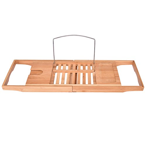 Studio : Allblessings Publisher : Allblessings Product Description The bamboo bathtub caddy with tray and book holder is useful in your bath time. The original bamboo color is neutral to complement most existing furniture. Contemporary and stylish design is exactly the right combination for your bathroom. With it, you will enjoy your bath time. 0