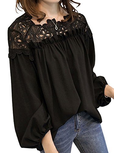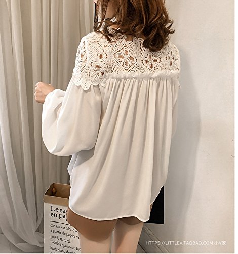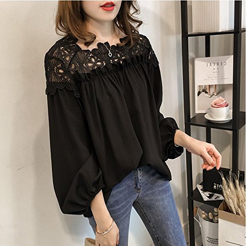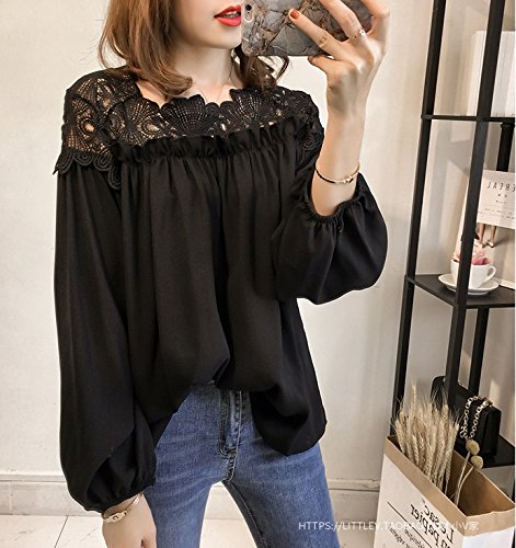 -. Title : (スカイシイ) skySea プルオーバー カットソー ブラウス レース 長 袖 薄 手 パフスリーブ シフォン ゆったり とろみ レディース 女 性 用 白 黒 M L