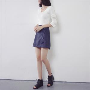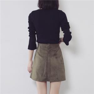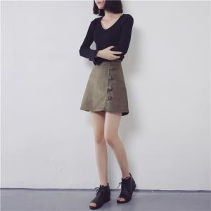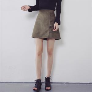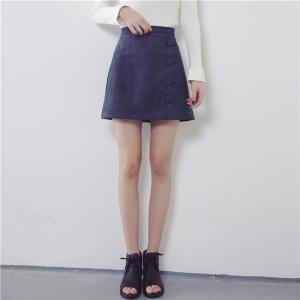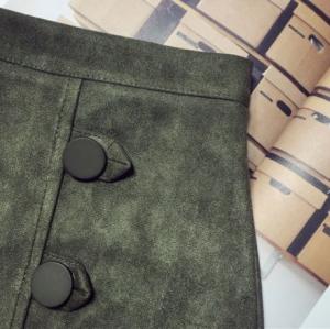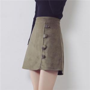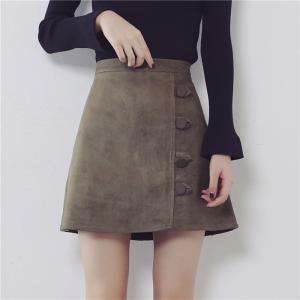 サイドにおおきめな丸ボタンがついた可愛いスエードスカート!