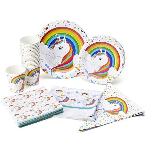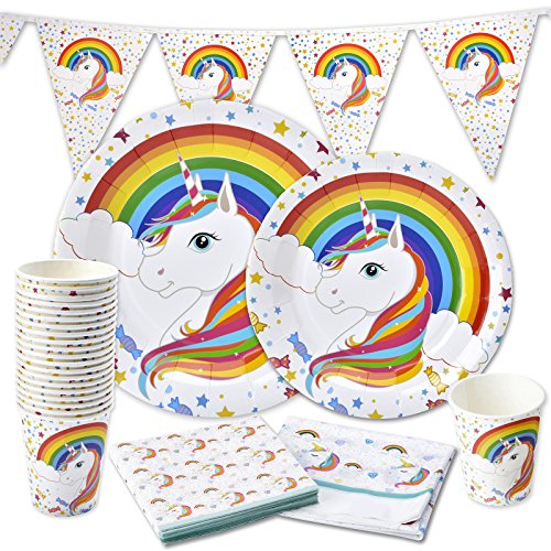 Rainbow Unicorn Party Supplies Birthday Tableware Pack Serves 16 Banner Tablecloth, Plates, Napkins & Cups