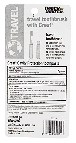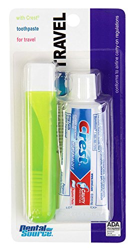 Dental Source Travel Toothbrush and Crest Toothpaste Kit, Colors Vary