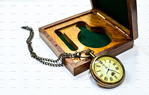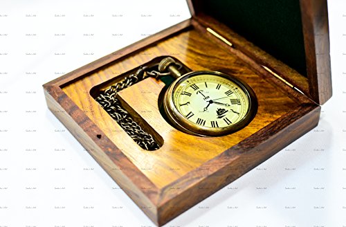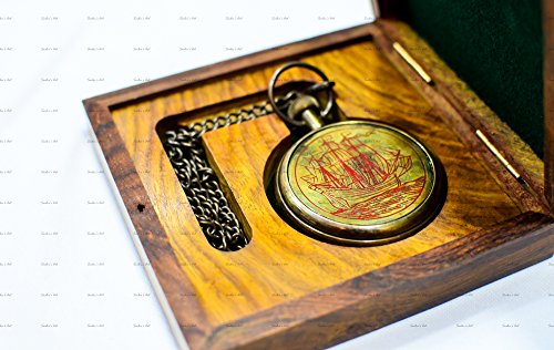 Sailor's Art Antique Brass Ship Pocket Watch With Wooden Box Unique Gift 2"