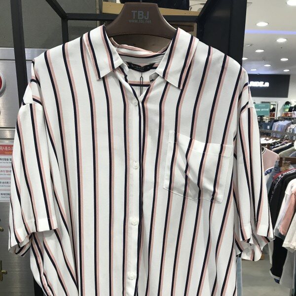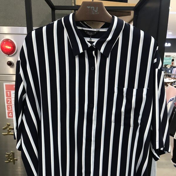 여성 5부 박스핏 스트라이프셔츠