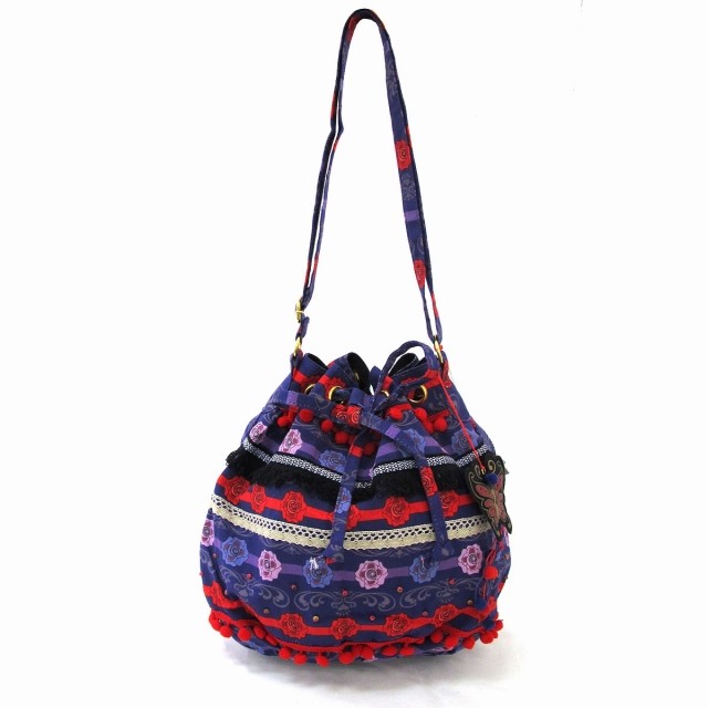 海外限定のショルダーバッグが限定入荷!珍しいアジアンテイストな柄が印象的!アナスイオリジナルのバタフライチャームやビーズ、レースなどがあしらわれた、とってもレアなアイテムです♪サイズもトートバッグのように大きな巾着バッグで、お出かけにぴったり!