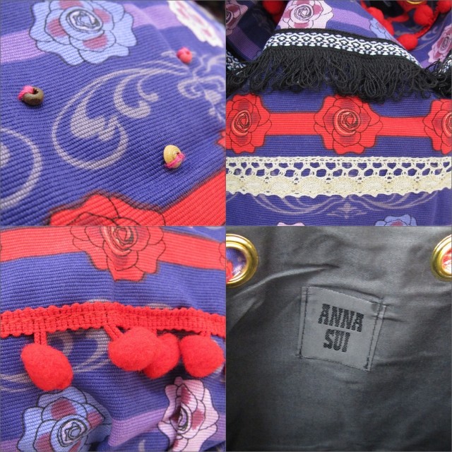 アナスイ ポーチ ANNA SUI バック 巾着 アジアンテイスト バタフライ ビーズ レース ショルダー パープル系