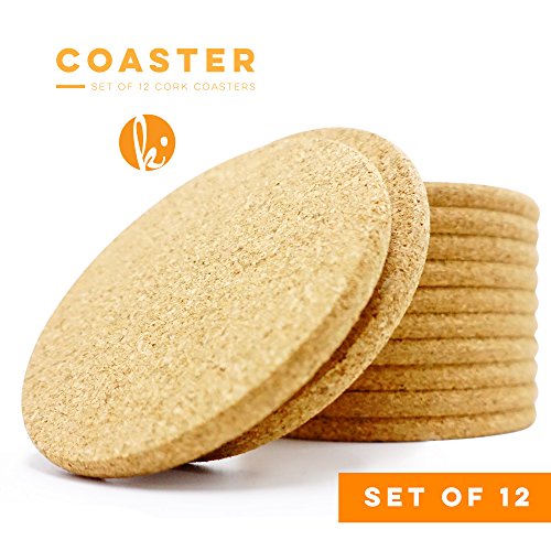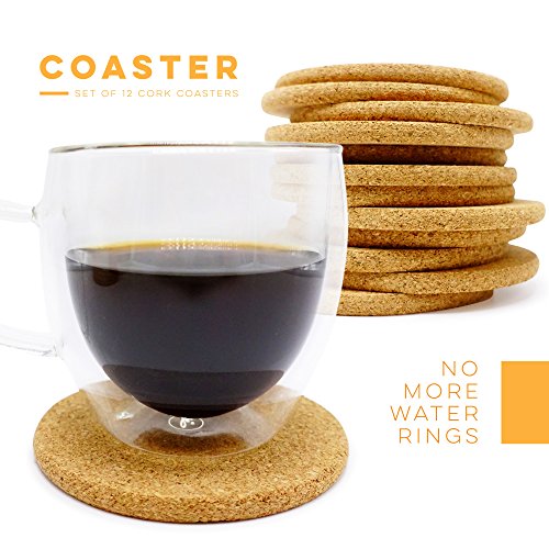Absorbent Cork Coasters (Circle) - Set of 12, Best Drink Coaster for Drinks in Office, Home, or Cottage