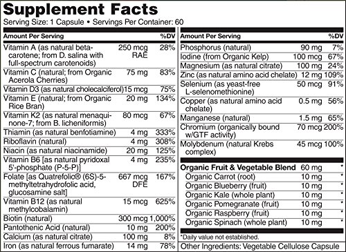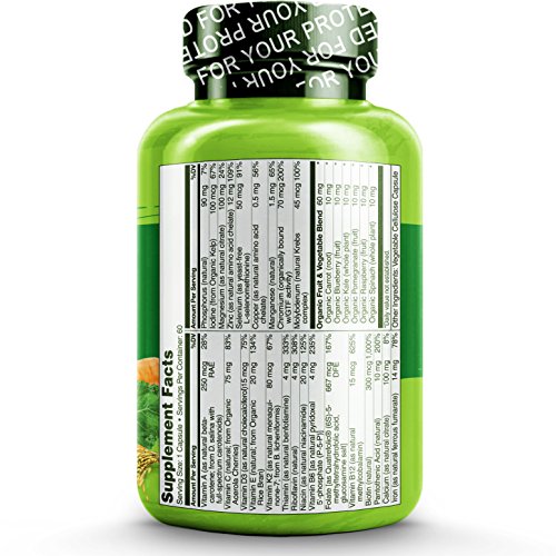 ★ Contains NATURAL Vitamins A, B Complex, C, D3, E, K2 ★ Minerals - Calcium, Magnesium, Iron, Zinc, Selenium ★ Antioxidants from ORGANIC Fruit and Vegetable Extracts