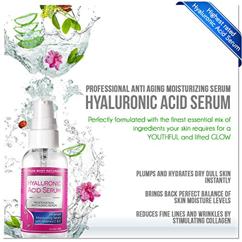 -. Binding : Misc. -. Brand : Pure Body Naturals -. Color : Clear -. Department : womens -. EAN : 0820103744355 -. Feature : NATURAL & ORGANIC hyaluronic acid serum is considered to be the highest quality HA serum on the market. / BEST NATURAL and ORGANIC ingredients to give you MAXIMUM Anti-Oxidant Protection to help ELIMINATE Free Radicals on your Skin That Causes Premature Aging. / SUPER SOFT SILKY SMOOTH HYDRATED & RESTORED SKIN : Our Serum moisturizers your skin and is power packed with Hyaluronic Acid, Vitamin C, and Vitamin E. / REDUCES your Fine Lines & Wrinkles - helps to stimulate your skins rate of exfoliation for a brighter, smoother complexion. Deals with the Antioxidant properties that will reduce skin damage caused by the sun. / GUARANTEED (OR MONEY BACK ! ) TO HAVE CLEARER, SMOOTHER BEAUTIFUL SKIN: Fast results because of Hyaluronic Acid Serum face serum absorbs rapidly into your skin, working to providing dramatic impact on reducing wrinkle size and giving DEEP Hydration. -. Label : Pure Body Naturals -. Manufacturer : Pure Body Naturals -. MPN : Hyaluronic Acid Serum -. PackageQuantity : 1 -. PartNumber : Hyaluronic Acid Serum -. ProductGroup : Beauty -. ProductTypeName : BEAUTY -. Publisher : Pure Body Naturals -. Size : 1 Oz -. Studio : Pure Body Naturals -. Title : BEST Hyaluronic Acid Serum For Your Face. Our Anti Wrinkle Facial Skin Care Brings Deep Hydration, Boost Collagen Production & Reduces Fine Lines. Anti Aging Moisturizer added Vitamin C & E. Natural Ingredients & Antioxidants Helps Repair Sun Damage 1 FL OZ -. UPC : 820103744355