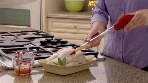 - Includes two interchangeable tips for basting and injecting