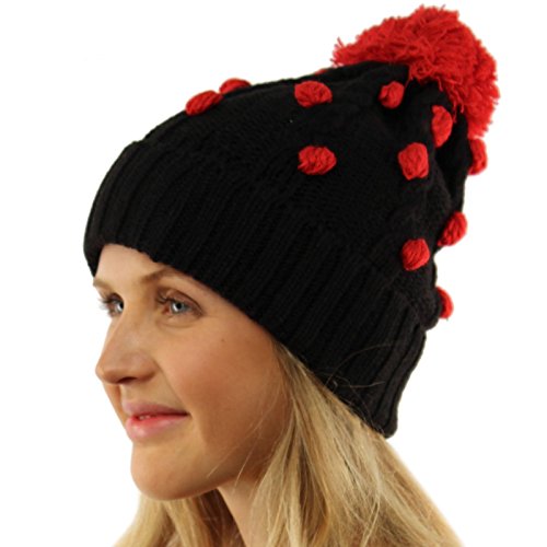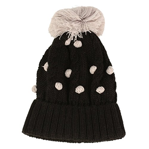 -. Title : Winter 3D Polka Dots Pom Pom Cuff Cable Knit Beanie Ski Snow Hat Cap