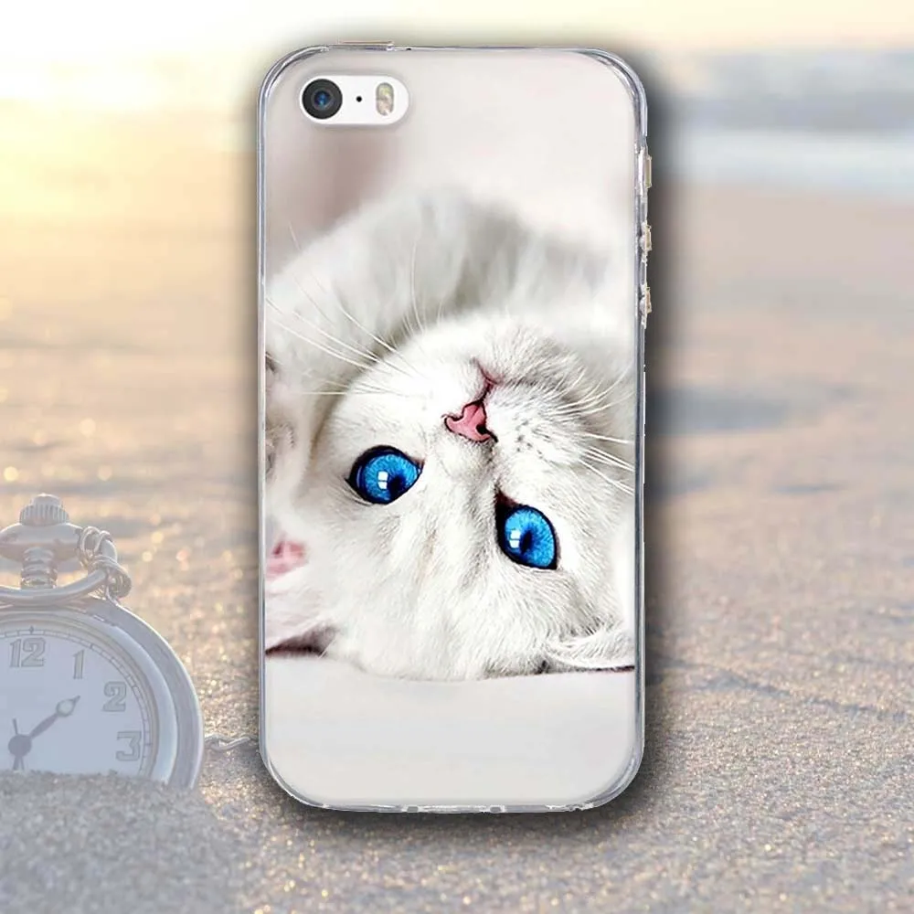 Features:White Cat Cute Colorful Printing Painted Pattern Fundas Coque Capa