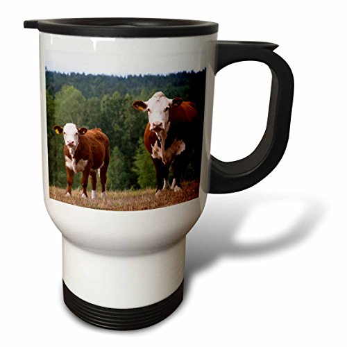 3dRose tm_82607_1 Calf Cow Brown and White Smaland, Sweden-EU28 PKA0117-Per Karlsson Stainless Steel Travel Mug, 14-Ounce