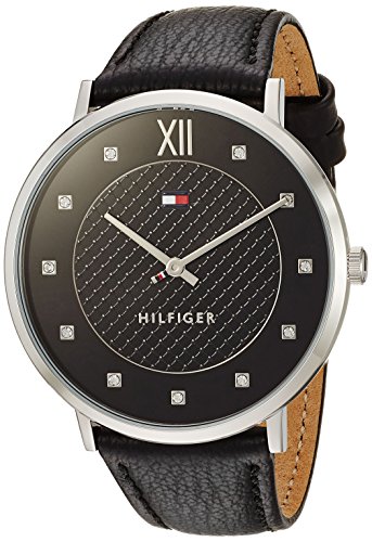 TOMMY HILFIGER WOMEN'S 'SOPHISTICATED SPORT' QUARTZ GOLD-TONE AND LEATHER CASUAL WATCH, COLOR:BLACK (MODEL: 1781808)