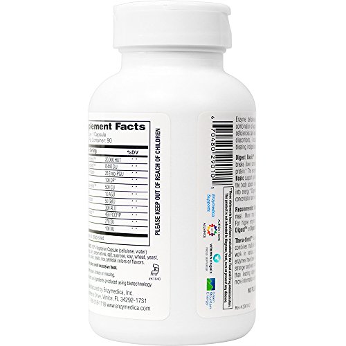 -. Binding : Health and Beauty -. Brand : Enzymedica -. EAN : 0730669478345 -. Feature : DIGESTION'S LITTLE HELPER: Occasional gas, bloating, indigestion, heartburn and irregularity can affect all members of the family. A gentle enzyme product may be all that is needed to combat these irritating digestive complaints. / ENZYMES TO THE RESCUE: Enzymes are key players in the digestive process. They help to maximize nutrient extraction and turn consumed food into energy. Enzyme deficiencies can lead to a variety of digestive discomforts, including occasional gas, bloating, indigestion and irregularity. / GENTLE + TOTAL CARE: Digest Basic is intended for the whole family as an introductory digestive enzyme product. Since it is a gentle formula, it may also be an excellent choice for individuals who have experienced sensitivities to high-potency digestive enzyme blends. Digest Basic capsules are small, making them easy to swallow. / EXCLUSIVE THERA-BLEND: Digest Basic contains Thera-blend enzymes. Thera-blend is an exclusive process that combines multiple strains of enzymes that work in various pH levels. Thera-blend enzymes have been shown to be three times stronger and work more than six times faster than leading digestive supplements. / QUALITY + EXPERIENCE: Enzymedica was founded in 1998 with the purpose of offering our customers the highest-potency enzyme products possible. Our goal of educating people about the importance of enzymes in overall health is what motivates Enzymedica. All of our products are made from only the highest quality enzymes and contain absolutely no fillers to ensure purity. Every product is 100% vegetarian, and we seek out vegan and Kosher ingredients whenever possible. -. Label : Enzymedica -. LegalDisclaimer : The products and the claims made about specific products on or through this site have not been evaluated by the United States Food and Drug Administration and are not approved to diagnose, treat, cure or prevent disease. -. Manufacturer : Enzymedica -. MPN : 29010-FFP -. PackageQuantity : 1 -. PartNumber : 29010-FFP -. ProductGroup : Health and Beauty -. ProductTypeName : HEALTH_PERSONAL_CARE -. Publisher : Enzymedica -. Size : 90 -. Studio : Enzymedica -. Title : Enzymedica - Digest Basic, Essential, Full Spectrum Digestive Enzymes, 90 Capsules (FFP) -. UPC : 730669478345