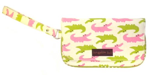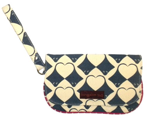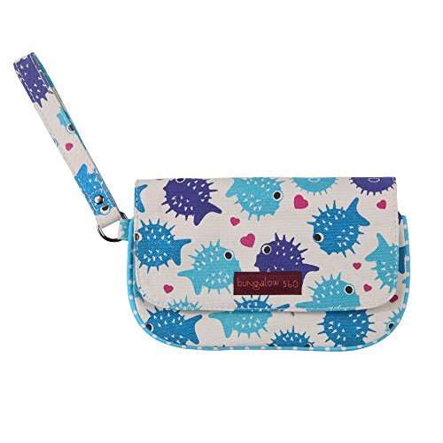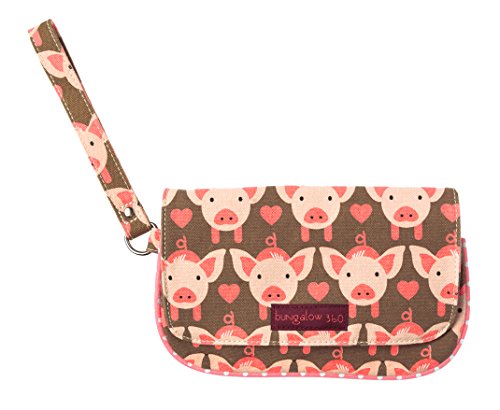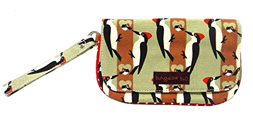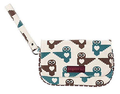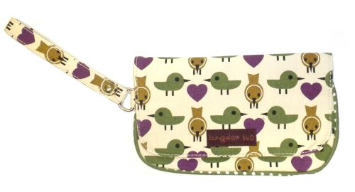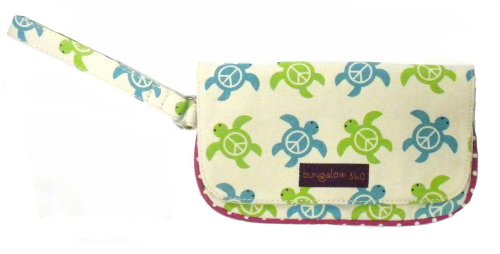 The Bungalow360 Wristlet may very well become your favorite wristlet ever! Securely closes with a zipped area covered by a snap-able flap. The interior area contains another zippered pocket. The wrist strap is 6" long making it just the right size for anyone! Bungalow360 creates eco-friendly accessories for the environmentally responsible fashionista. Made of heavy natural canvas and printed with water-based inks. 100% Natural Cotton Canvas. Inside zip pocket with peace sign zipper pull. Fold over flap with snap closure. Approximate size: 8"long x 4.5" high. Wristlet strap measures 6" long.