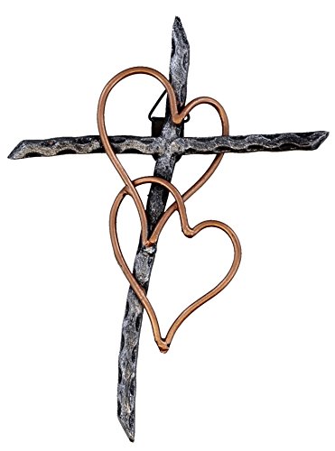 Entwined Hearts Decorative Welded Metal Wall Cross - Two Hearts Joined - Small Version