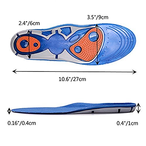 Active Gel Insoles, Massaging for Sport Running, Shoe Cushion Inserts, Foot Pain & plantar fasciitis relief, Blue(Women's Size 5-10)