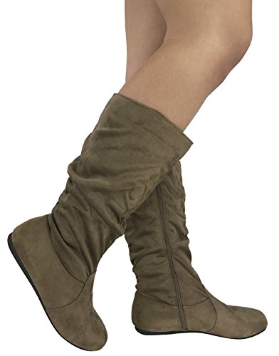 -. Title : Wells Collection Womens Wonda Boots Soft Slouchy Flat To Low Heel Under Knee High