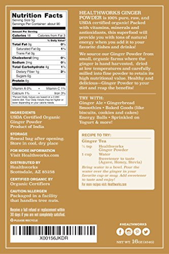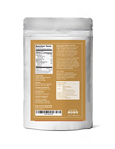 Our Healthworks 100% USDA Certified Organic Ginger powder is raw, pure, all-natural, vegan, gluten-free, non-irradiated, and non-GMO, making it a great addition to any lifestyle.