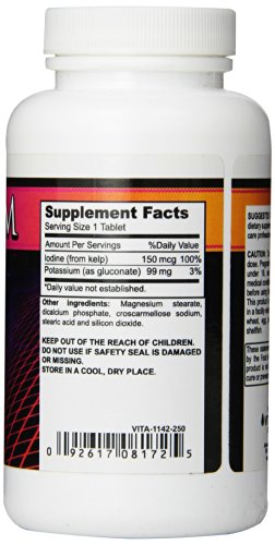 -. Binding : Health and Beauty -. Brand : Vitalabs -. EAN : 0092617081725 -. IsAdultProduct : 0 -. Label : Vitalabs -. LegalDisclaimer : These statements have not yet been evaluated by the United States Food and Drug Administration. This product is not intended to diagnose, treat, cure or prevent any disease. -. Manufacturer : Vitalabs -. MPN : 092617081725 -. NumberOfItems : 3 -. PackageQuantity : 3 -. PartNumber : 092617081725 -. ProductGroup : Health and Beauty -. ProductTypeName : HEALTH_PERSONAL_CARE -. Publisher : Vitalabs -. ReleaseDate : 1999-01-01 -. Studio : Vitalabs -. Title : Vitalabs Potassium Plus Kelp, 250 Tablet Bottle, (Pack of 3) -. UPC : 092617081725