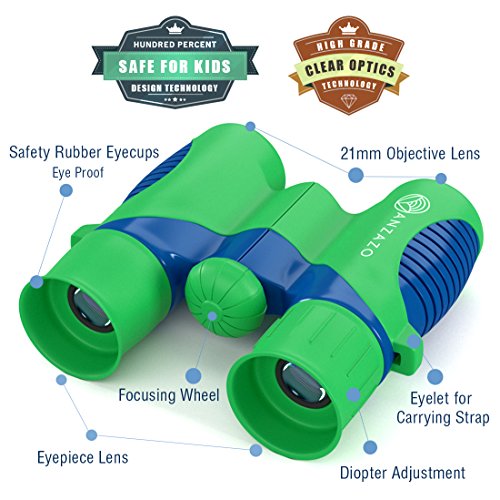 ✅ SHOCK PROOF and SUPERIOR SAFETY Our binoculars have ♥Safe For Kids♥ Design Technology to be kid proof; It's fully coated in smooth rubber in order to prevent injuries and to resist shocks camping travel safari and many adventures; A perfect birthday gift for children;