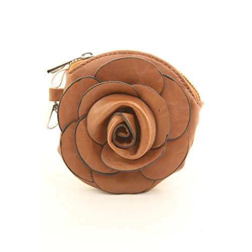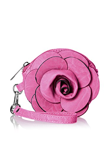 Pretty flower wristlet for when you just need a little something. A detachable strap adds the option of hands free wear, so you can remain fashionable no matter what the day throws at you! Made from textured leatherette with silver-tone hardware. Detachable wristlet and zip top closure. Can be clipped onto a belt loop if desired. Interior key ring strap. Fully lined fabric compartment. BEFORE PURCHASING, PLEASE COMPARE THE SIZE OF THIS HANDBAG TO ONE OF YOUR OWN FAVORITE BAGS.
