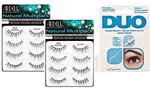 -. Feature : PERFECT LASHES: Demi Wispies are incredibly popular, and it's not hard to see why! Ardell Demi Wispies boast a tapered lash style with medium volume and length - the perfect fluttery lash look without being too heavy. The varied lash lengths create the wispy looking finish that blends seamlessly with your natural lashes for an effortless finish. / STYLISH: Ardell Demi Wispies are super stylish and easy to apply, they are also reusable if removed carefully after use. These eyelashes are coveted by celebs, makeup artists, bloggers and lash fans around the world. / PERFECT LOOK: For a perfect faux lash application, women look to duo, the world's best-selling waterproof lash adhesive. Duo adhesive is celebrated for its safe, gentle formula and the strong, sure hold it provides. / PLENTY OF APPLICATIONS: One tube of duo (in both dark and clear tones) allows for countless applications because only a thin line of duo is required to create beautiful, eye-opening results. For both the lash expert and the faux phobic, duo adhesive ensures that lashes are easy to apply and they stay in place. / SPECIFICATIONS: Includes (2) pack of Ardell Multipack Demi Wispies Fake Eyelashes, 8 pairs total, and (1) .25oz bottle of Duo Lash Adhesive, clear.