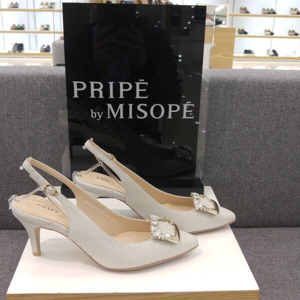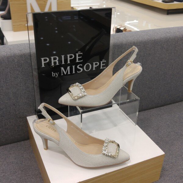 미소페 여성 스퀘어장식 포인트 하이힐 슬링백 (7cm)