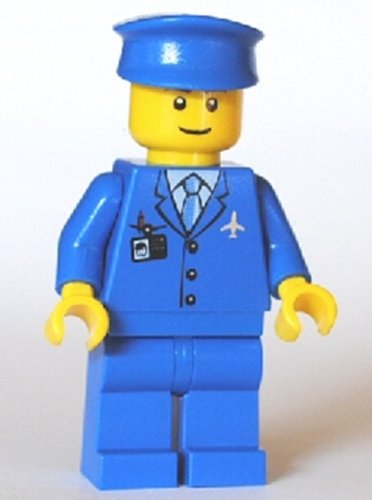 -. Title : Airport - Blue 3 Button Jacket & Tie, Blue Hat, Blue Legs Minifigure