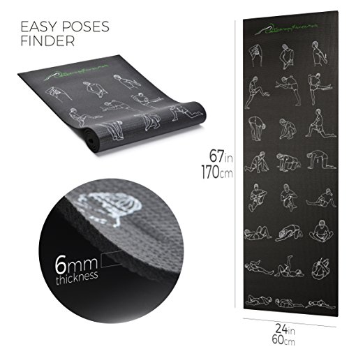 ☯ THICK MEMORY FOAM & PERFECT LENGTH: No more achy knees or elbows. Your ¼ inch (6mm) therapy fitness and yoga mats with memory foam cushioning give your bones and joints the support they need for proper alignment. This thick yoga mat is *67" long 24" wide, 1/4'' thick, premium mat comfortably cushions spine, hips, knees and elbows on hard floors while keeps you balanced.